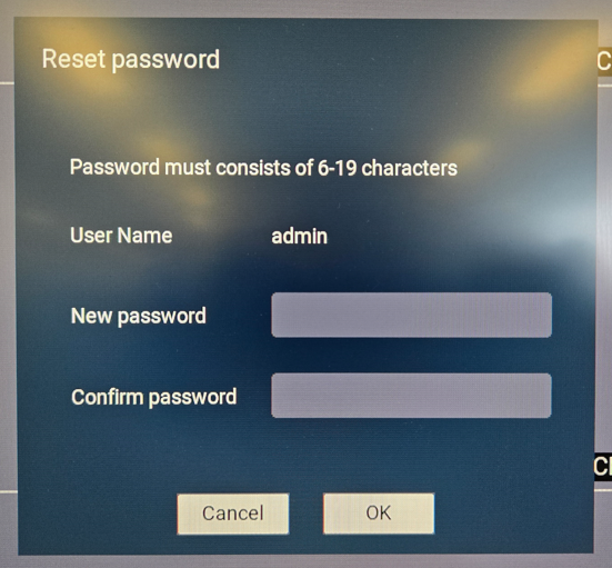 Click OK to save the password, click OK to exit, you can now log in with your new password.