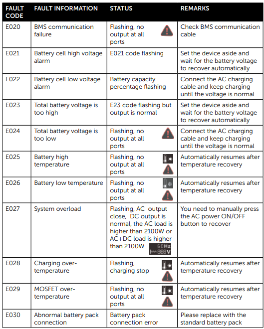 DC power should only need to be applied for a minute or two. This will reset the protection mode, and the unit can then be connected to mains power. When you hear the fans start to spin, the unit is successfully charging from mains, and the DC power input can be disconnected.