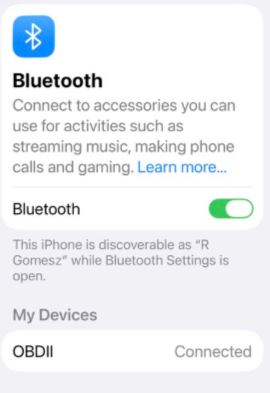 The the App should say Connected: OBDII, car data will appear within a minute